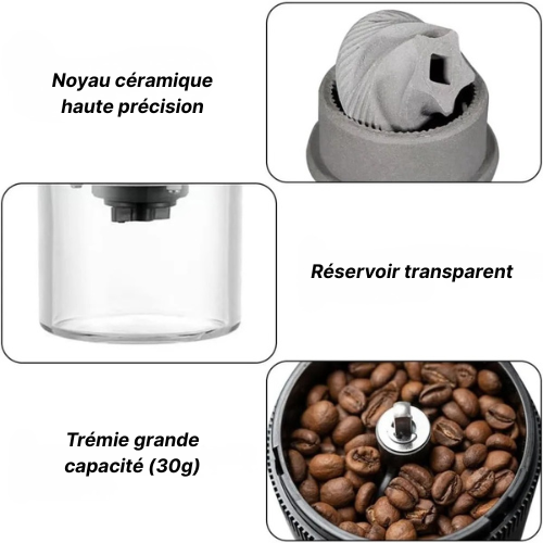 Plus besoin de tourner une manivelle. Un bouton, 20 secondes, c'est prêt. Fraîcheur d'un moulin manuel, rapidité d'une machine automatique.